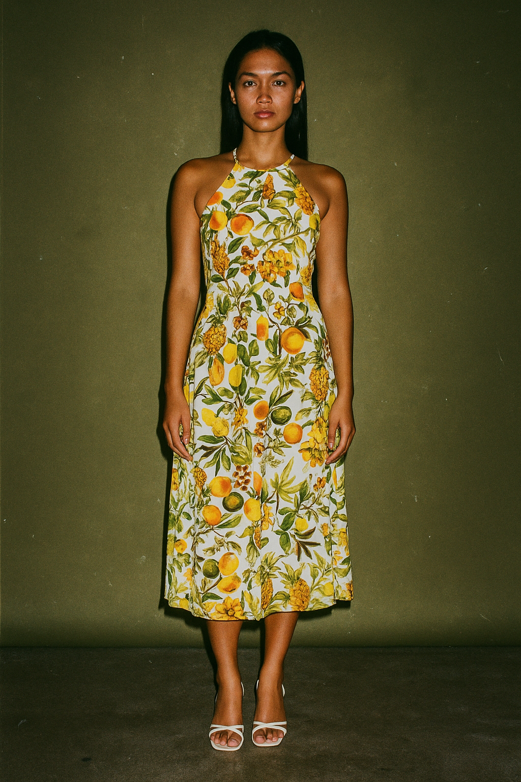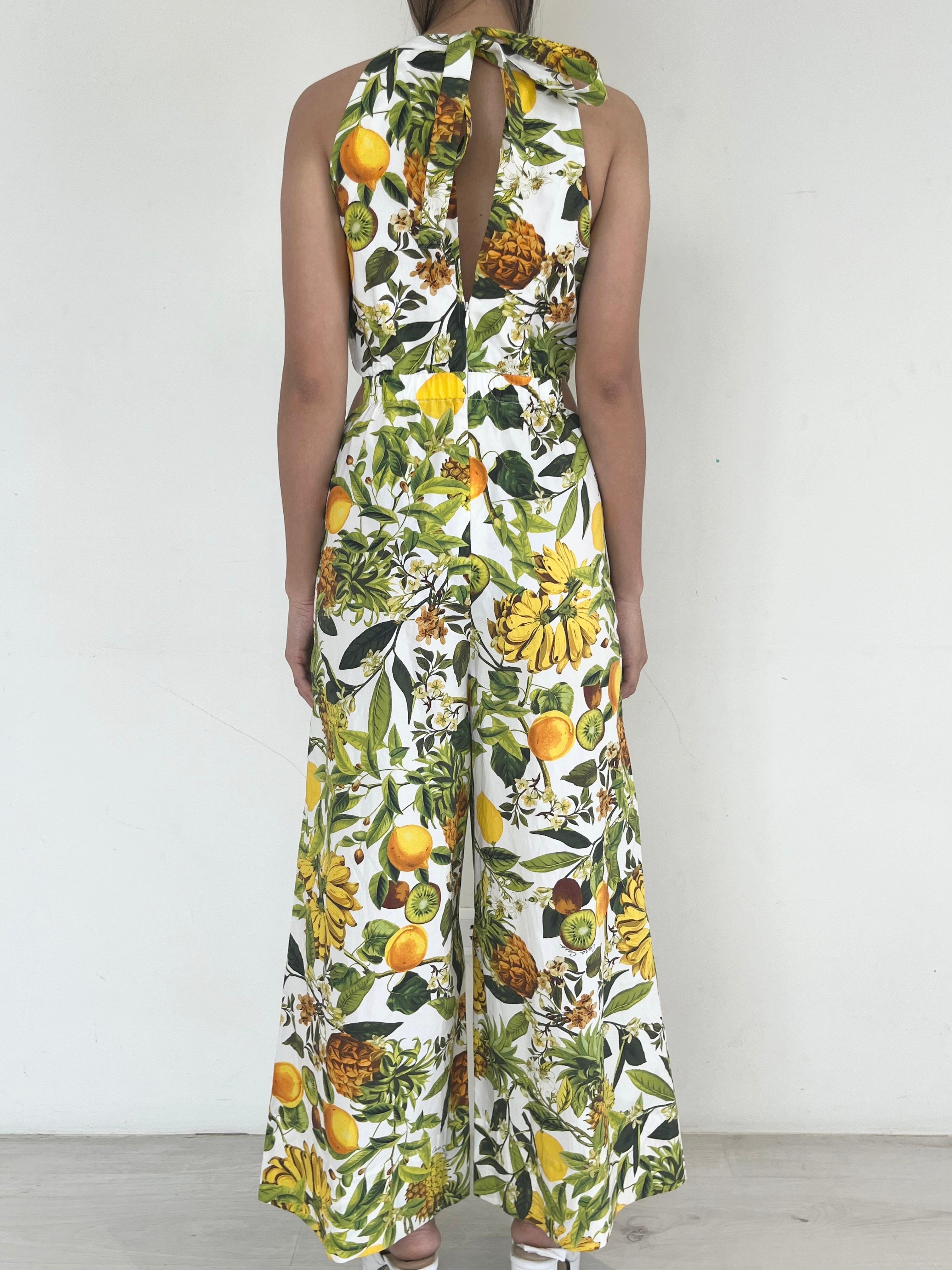 Cara Cara Multicolor Farm Rio Jumpsuit Petite Halter wih Cutout & Wide Leg