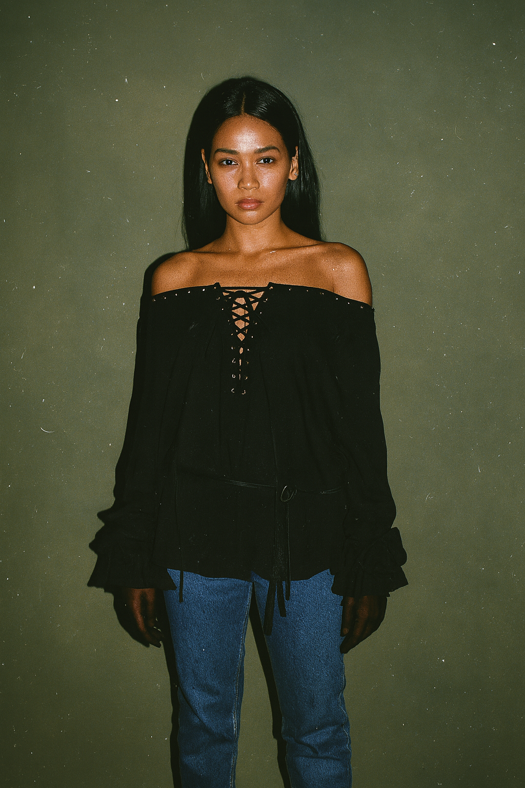 Datt Long Sleeve Top Adjustable fit Ruffled with Flowers