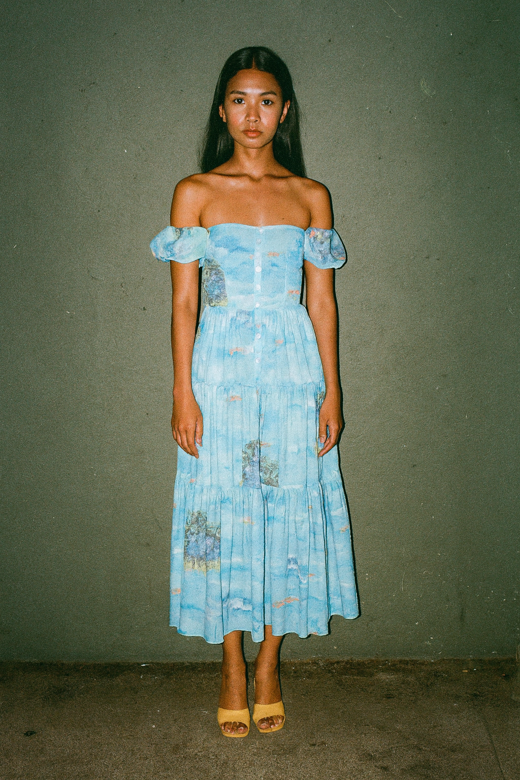 Puff Sleeve Beach Print Dress