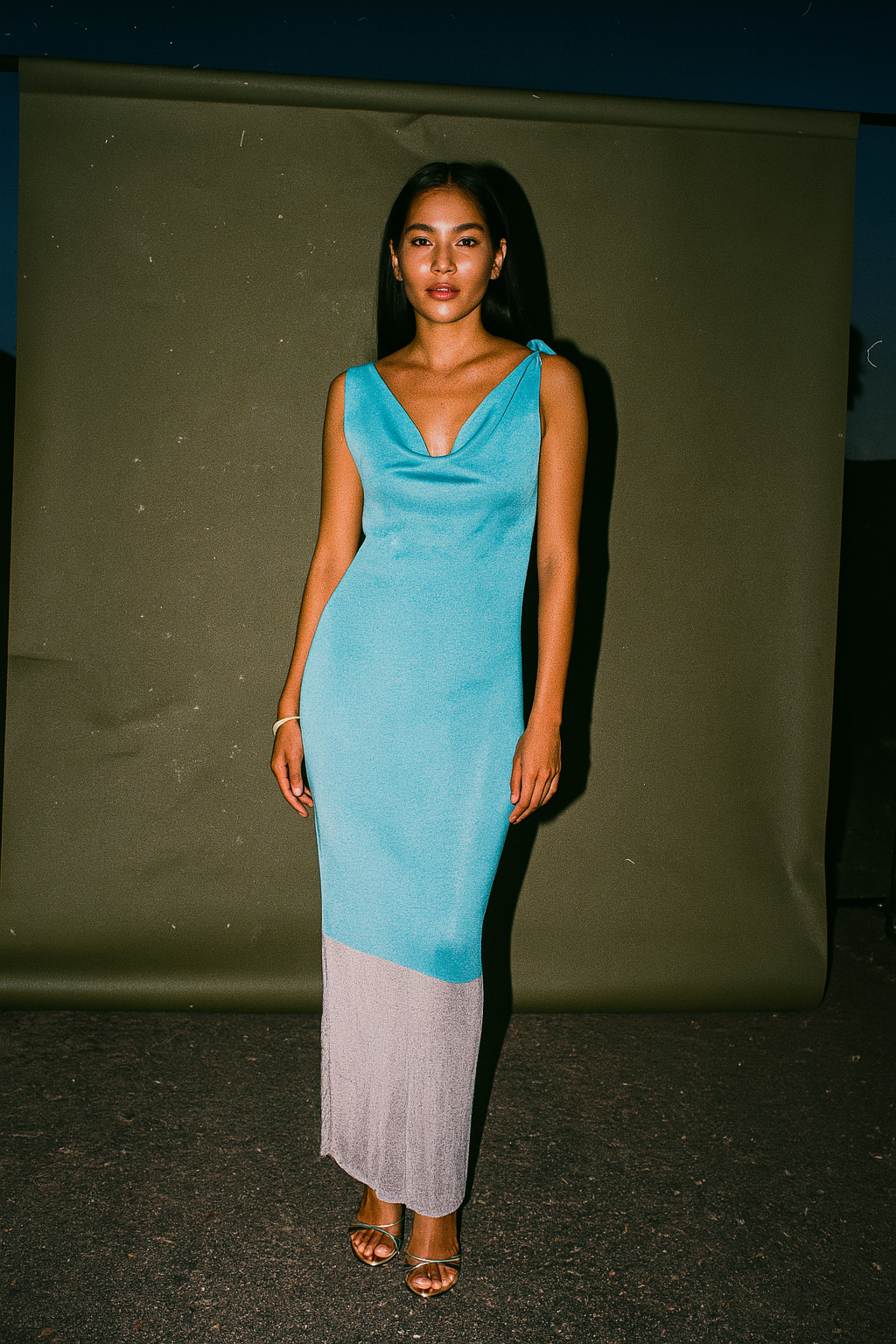 Two Toned Blue and Silver Knit Dress with Acrylic Bead Detail